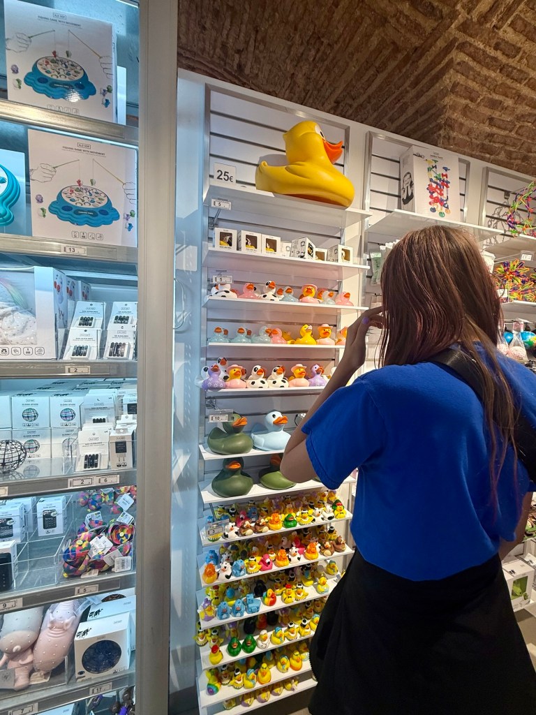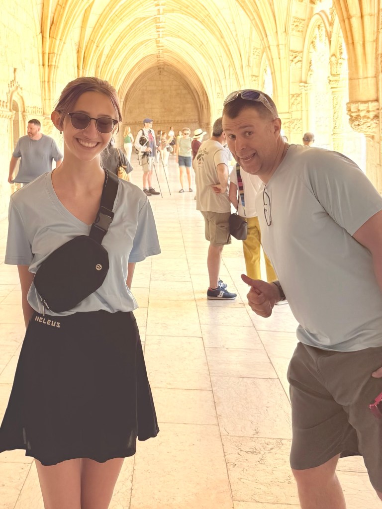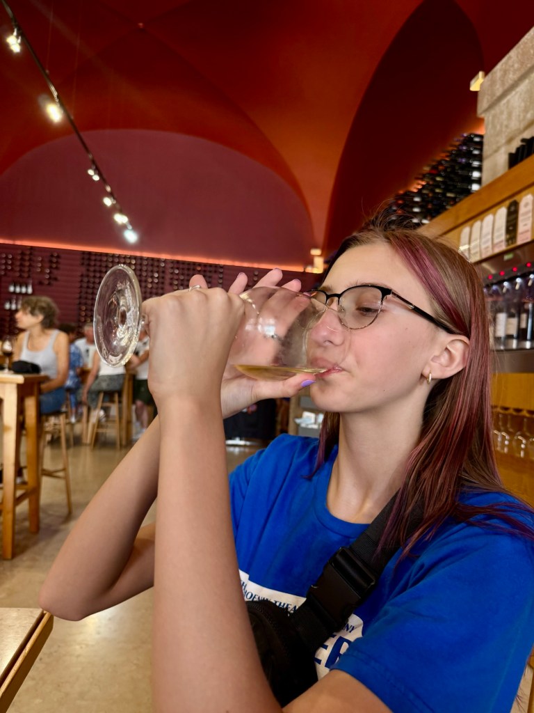 We had a tasty almond croissant as a snack. Then we found a Portuguese version of 5 below with rubber ducks galore. That was followed up by some wine tasting. Now, if you know Keely, you know she is a rule follower. She said she would try some wine and beer in Europe because “It’s okay there.” We got her to try some wine. She is not a fan lol!