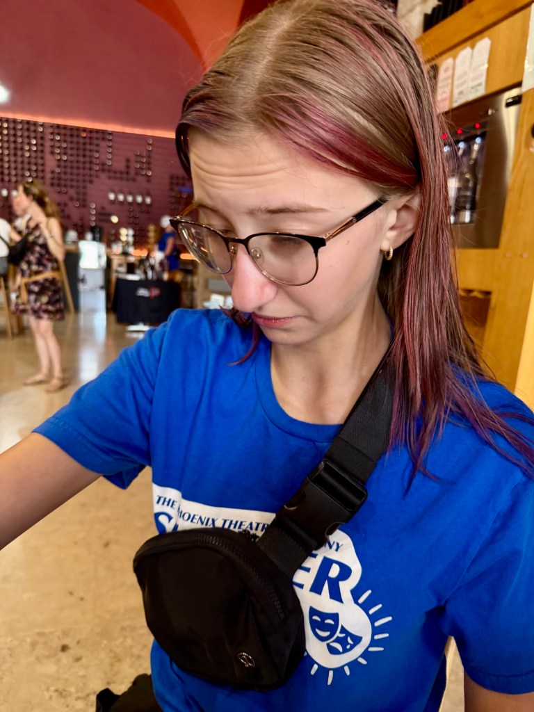 Yum! Two hands so she didn’t accidentally drink too much lol! Clearly a fan of wine….