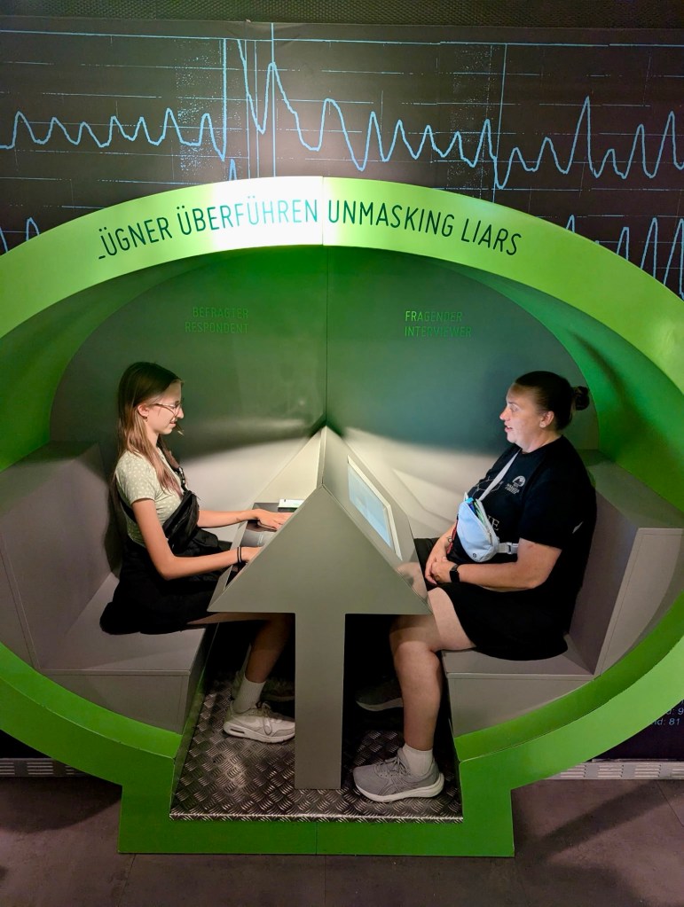 We DID get to the spy museum. It was actually pretty cool. Keely is pretty decent at morse code. She passed the lie detector test (except one question about hand washing, but we will move past it). She also got a chance to use a rotary phone. I included the video of her second attempt. I cracked the safe in less than 37 seconds after watching a dude struggle with it for over 5 minutes and Keely quit in 3 minutes. Wade watched some James Bond and found some shows he wants to watch now. We just got a chance to have fun and be silly. Tomorrow we will hit the major points of Berlin.