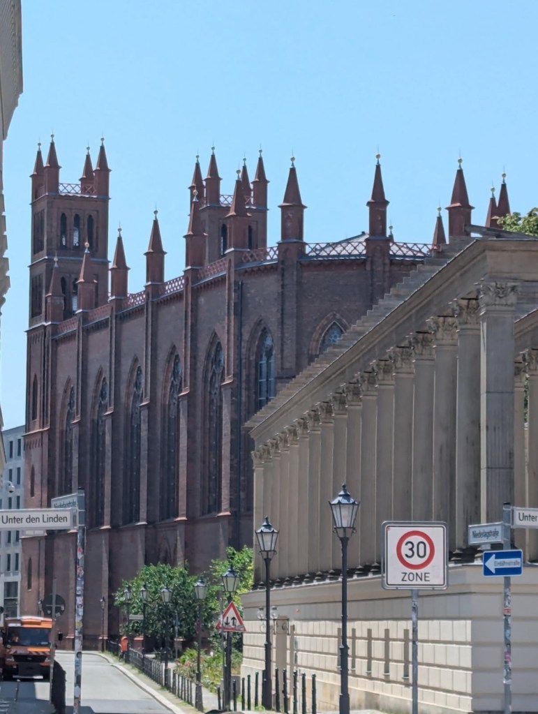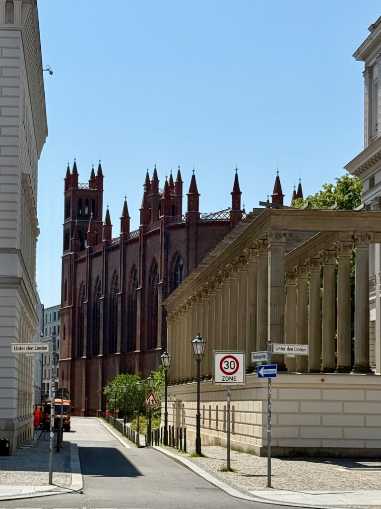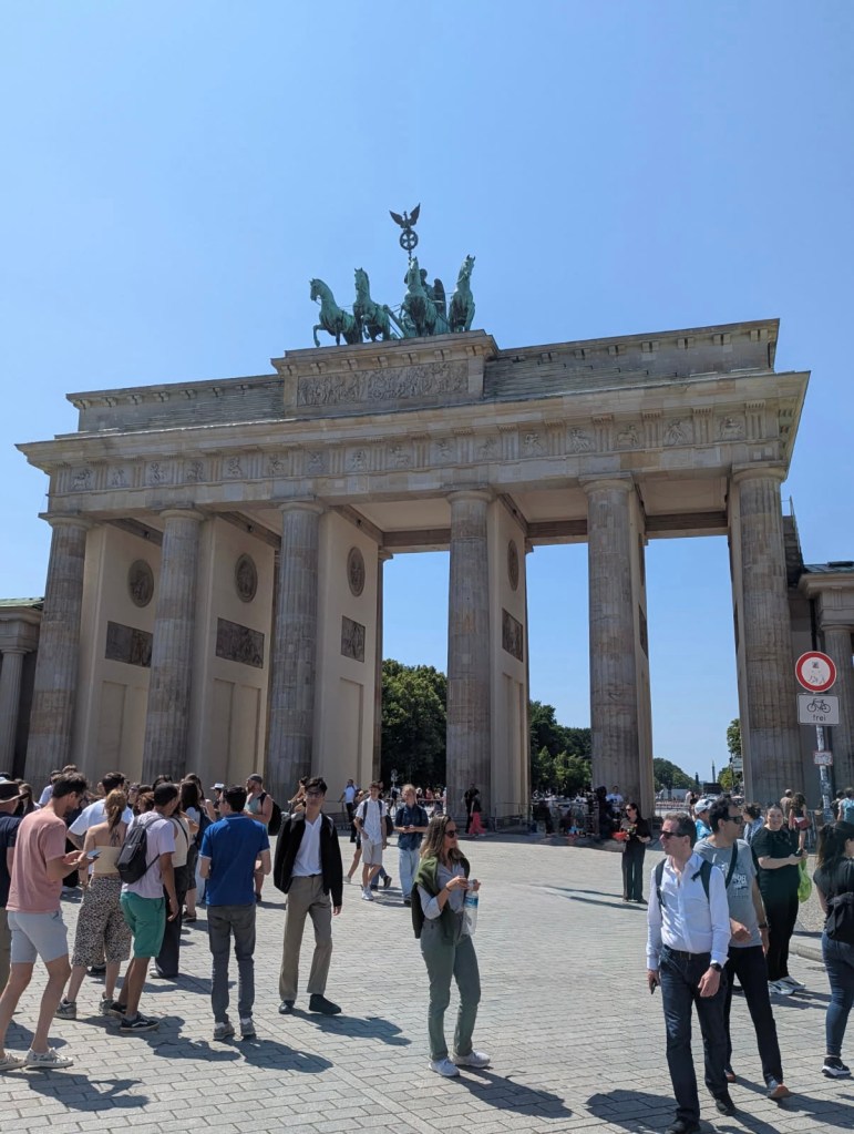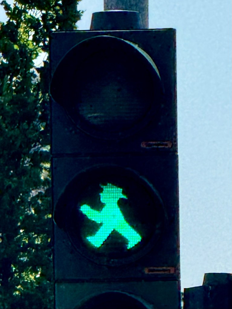 Today was unintentionally eventful. We took the train from Frankfurt to Berlin and got to our hotel relatively easy. We stopped at a cool little place by our hotel for lunch and then headed out. We were SUPPOSED to be making a quick trip to Charlottenhof Palace and then back to go to the Spy Museum. Wellllllll….the train from one point to our final point is out for construction. So we hopped on the replacement bus……or so we thought. Let’s just say, we did NOT go to the palace. But, we got a couple photos. I, of course think the cross walk people are hilarious, so there’s that.