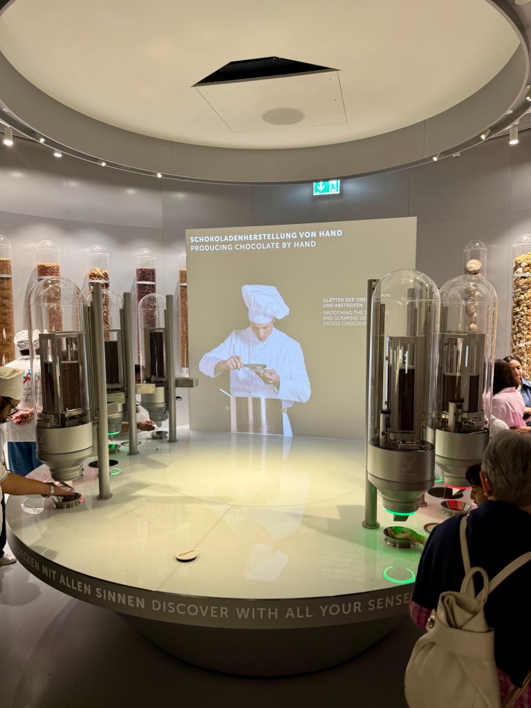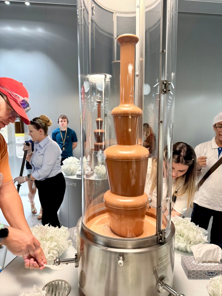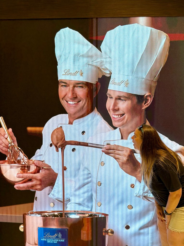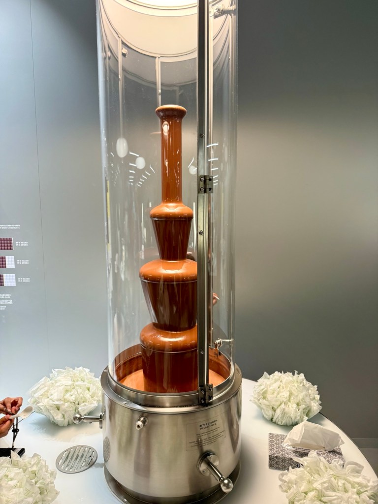 Today we headed to the Lindt Chocolate factory. We got to do the museum tour. We learned a little more about chocolate. They confirmed that the reason chocolate became affordable for the masses is thanks to Portugal. So, yay Portugal! Listen, they had three chocolate fountains and spoons. Then they had a chocolate tasting station. They passed out chocolate at the end and in the store.