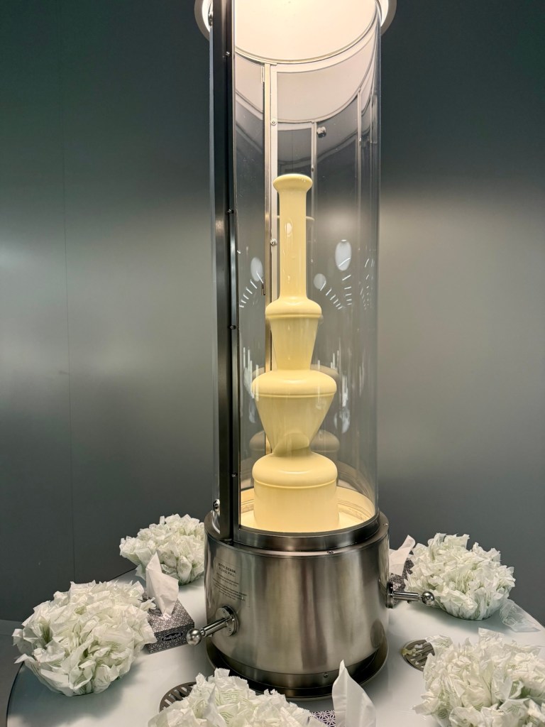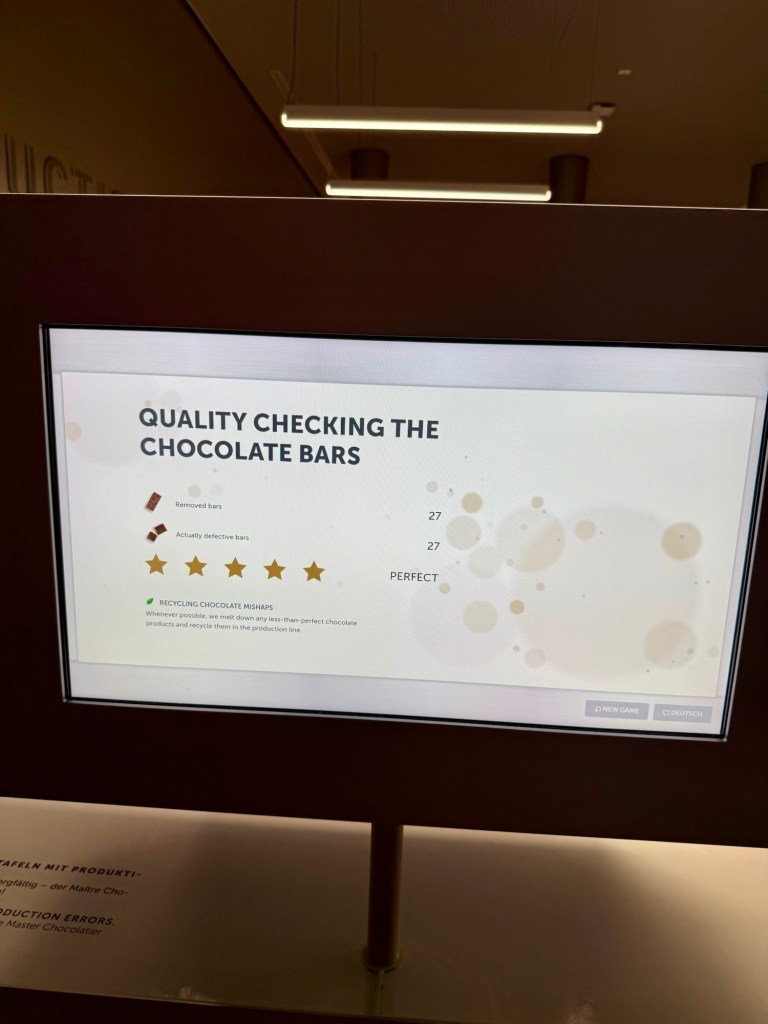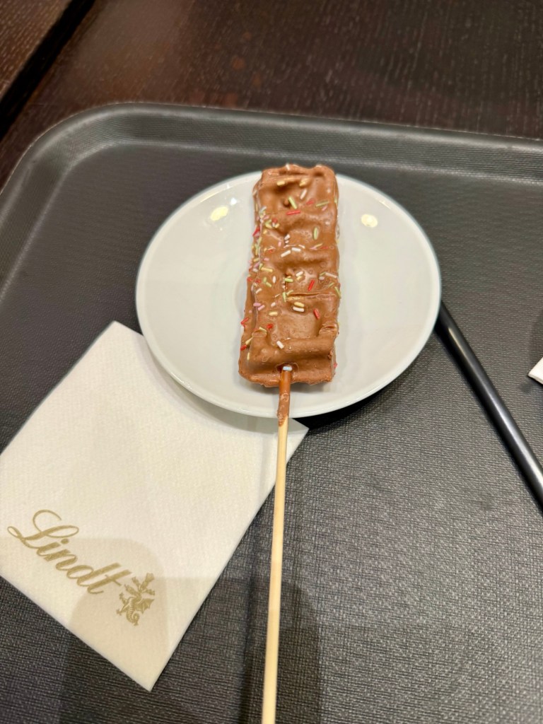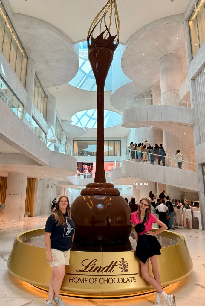 Today we headed to the Lindt Chocolate factory. We got to do the museum tour. We learned a little more about chocolate. They confirmed that the reason chocolate became affordable for the masses is thanks to Portugal. So, yay Portugal! Listen, they had three chocolate fountains and spoons. Then they had a chocolate tasting station. They passed out chocolate at the end and in the store.