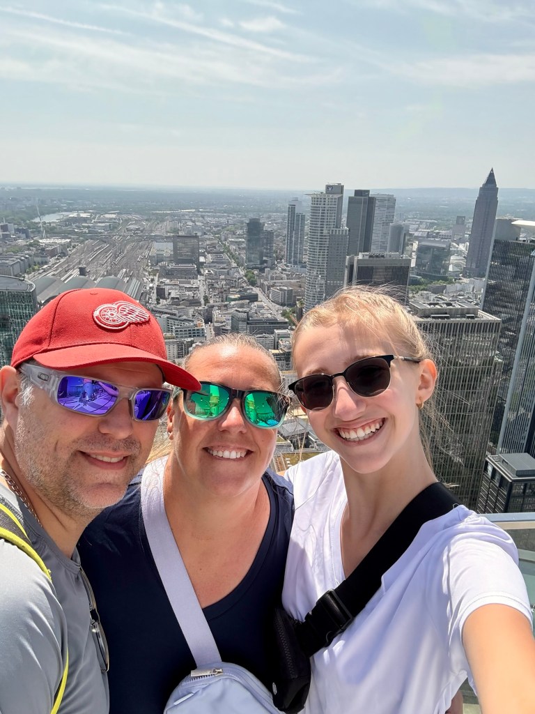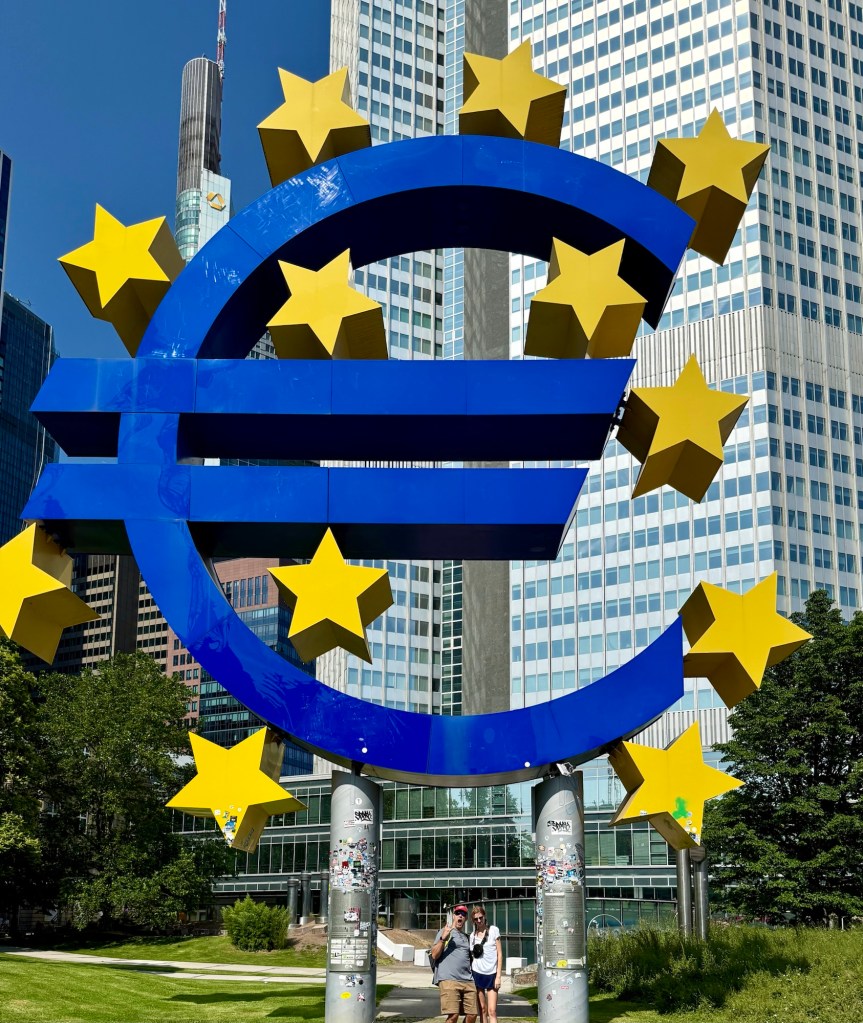 We slept in a bit. Keely had a waffle slathered in Nutella. We visited the Euro sign, the European Central Bank, and went to the observation deck of the Main Tower (all repeats for Wade, but cool nonetheless). We found some cool buildings and fountains. We…..well, I ate a warm apfelstrudel and we did laundry lol! It was a busy, but slow day in Lotz land.