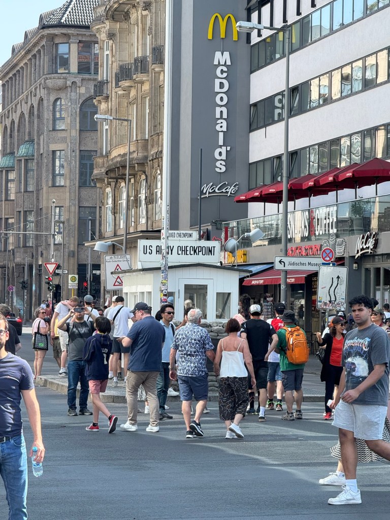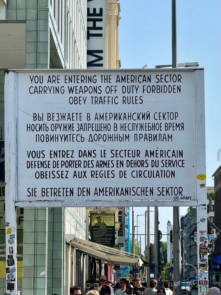 Once we got to Checkpoint Charlie, I got a tad emotional. It hit me that my dad has lived on both sides of the wall as a German and as a German-American. He was born in and lived in East Germany until the age of 14 (he turned 15 in Munich on the west side). Then he came back and lived in Bremerhaven as an American solider. Reading the stories of people trying to get across that border, many surviving and many not, it hit me just how lucky he was.